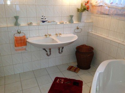 - Bad mit Badewanne, 2 Waschbecken, WC und Bidet