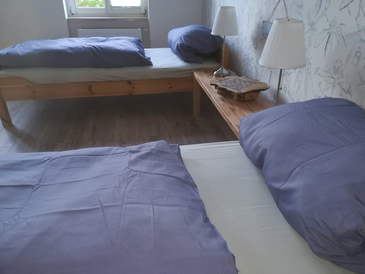 Ausstattung: 3 Schlafräume :Doppel-Bett, 2 Einzelbetten, 1 Bett 140 cm, 1 Zustellbett
