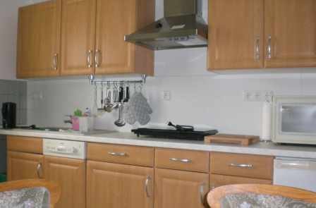 Wohnung 2: in der 2. Etage (1-4 Personen) Wohnzimmer mit TV, DVD Player Schlafzimmer mit Doppelbett und Babyreisebett Küche mit Küche mit Essecke, Mikrowelle, Geschirrspüler Kinderzimmer Flur Bad