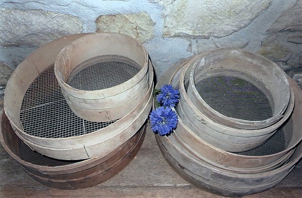 [Gegenständliches] Ein für Rieder typischer Gegenstand sind verschiedene runde Siebe. Siebe, die bis in die jüngere Vergangenheit noch für die Reinigung des Blumensamens gebraucht wurden. Unternehmerisches Geschick ließ Rieder in den 1930er Jahren das Prädikat „Blumendorf“ Deutschlands zukommen. Viele Leute in Rieder bekamen damals die Möglichkeit, ihr Einkommen aufzubessern, und einige gründeten selbst Blumensamen-Zuchtbetriebe.